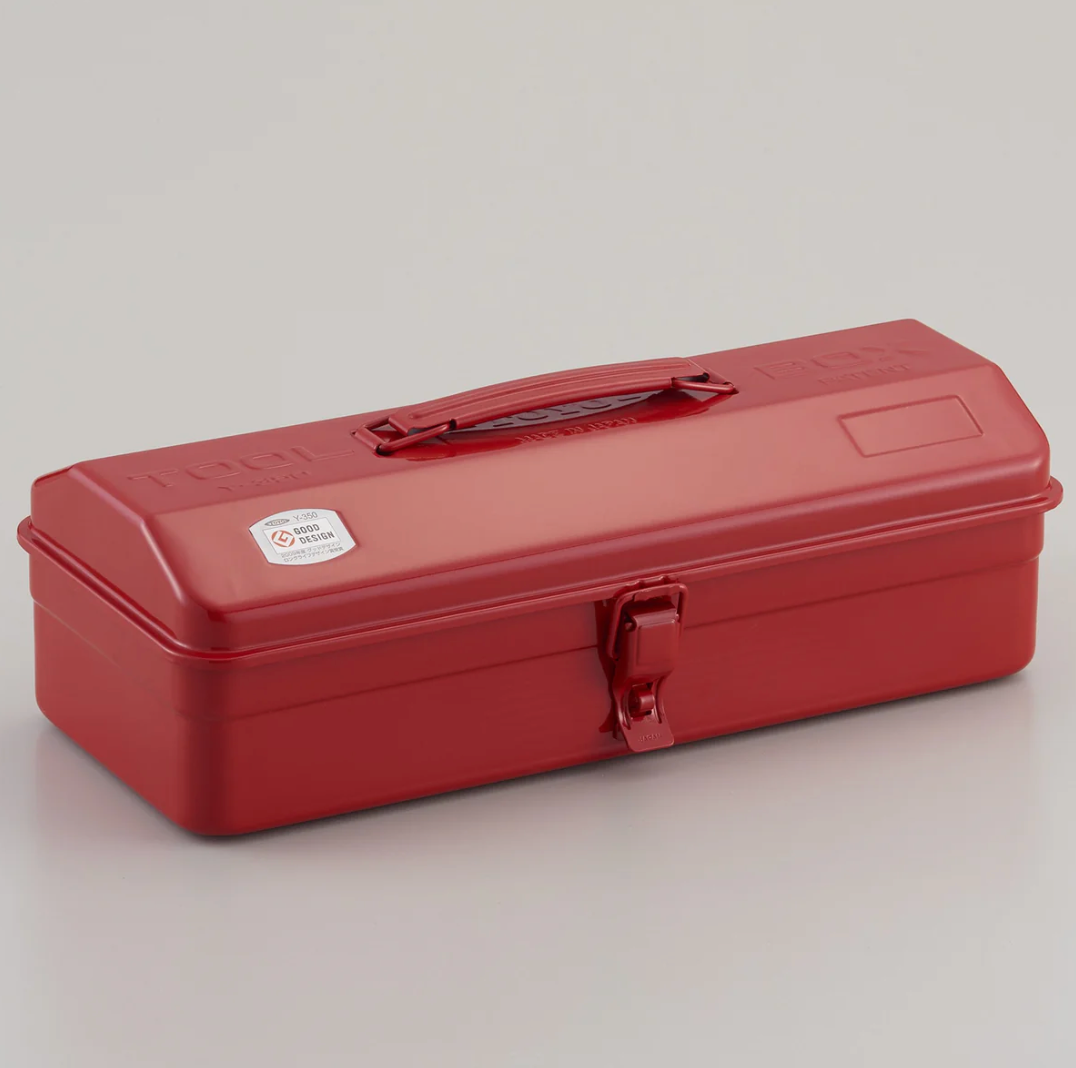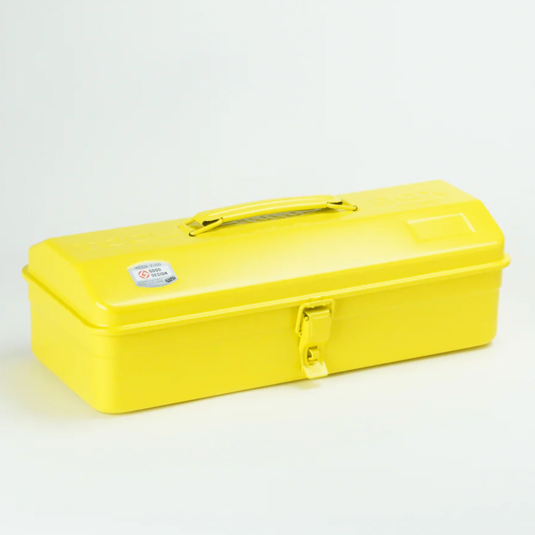 Steel toolbox with camber lid and top extendable handle. Produced from one piece of steel, resulting in water-tightness, no sharp edges and unmatched strength. Use for tools, art supplies, make-up - the possibilities are endless!